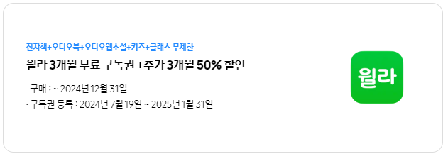 윌라3개월 무료 구독권+추가3개월 50% 할인