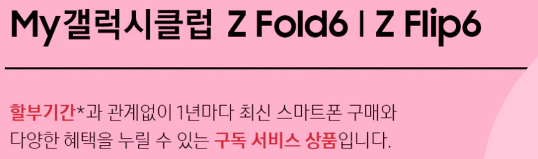 삼성카드로 결제 시 할부 기간과 관계없이 1년마다 최신 스마트폰 구매와 다양한 혜택을 누릴 수 있는 구독 서비스 상품입니다.