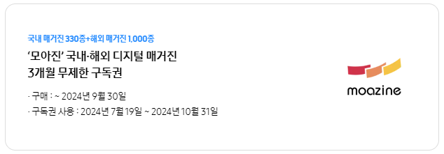 '모아진'국내, 해외 디지털 매거진 3개월 무제한 구독권